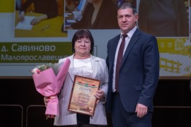 Александр Ефремов вручил награду Любови Венедиктовой из поселка Мятлево Износковского муниципального округа. Она получила максимальную оценку жюри в номинации «Хозяйка-наставница», в которой участвовали главы администраций сельских поселений и другие руководители.